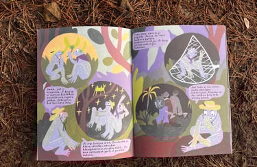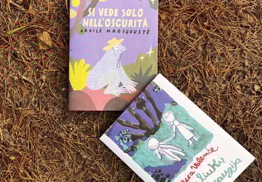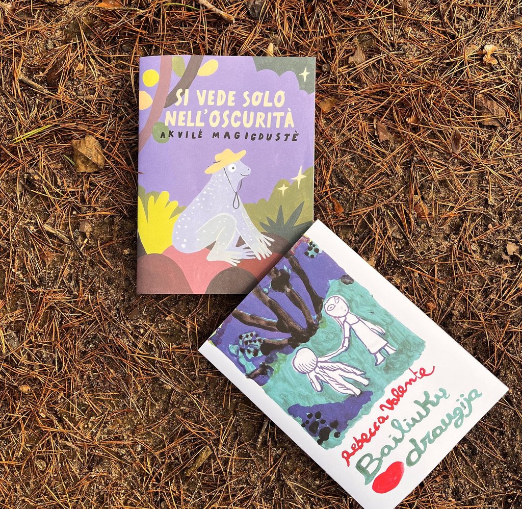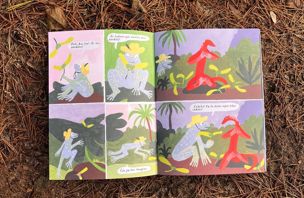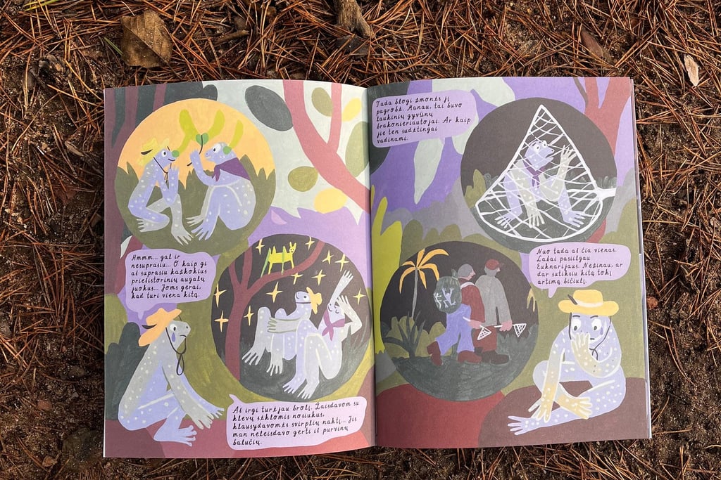 "Bailiukų draugija / Tai matosi tik tamsoje" is a joint project with Rebecca Valente. It's a two part comic book for children, that can be read from both sides. Available in Lithuanian and Italian.