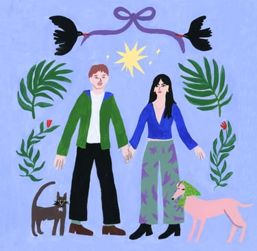 Personalised invitation to a wedding - an illustrated portrait of the couple. Picture on the right by Tomas Krukis.